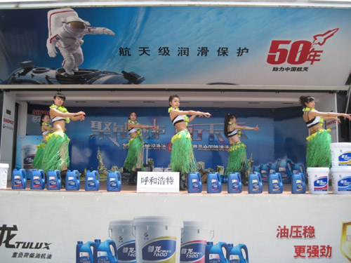 夏威夷风情舞蹈在炎炎夏日给现场的司机师傅们带来了一抹清凉。