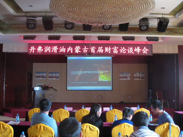 2009年9月29日包头丽晶国际酒店,针对内蒙古新市场方案的启动,丹弗润滑油该区域首次年度财富峰会隆重召开。市场部经理王家荣先生为与会代表送上了丹弗09年区域新销售战略的演讲并对下一步全区市场推广做了展望。中铁集团、包头市公安局、包头市交通局、中国稀土高科集团等单位领导出席会议并作了精彩发言。内蒙古商报、中国冶金报、中国物资信息报等媒体记者对会议做了全程跟踪采访。伴随着此次财富峰会的圆满闭幕,与会代表表示,丹弗将会展现更加优异的成绩,创造财富,在不断致力发展的征途上,让我们共同见证丹弗辉煌绚烂的明天。