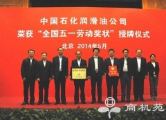 5月8日,中国石化润滑油公司荣获全国五一劳动奖状授牌仪式在润滑油公司举行。中华全国总工会中国能源化学工会全国委员会主席王俊治、中国石化集团公司工会工作委员会(思想政治工作部)副主任党军、中国能源化学工会石油石化工作部部长佟永春、副部长王洁、中国石化集...