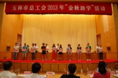8月21日,玉林市总工会举行2013年金秋助学活动仪式,33名玉柴职工子女每人获得1000元至2500元不等的助学金。 今年考取华中科技大学的玉柴职工子女李胤征在受助仪式上代表全体受助学生发言。她说,非常开心获得了玉...