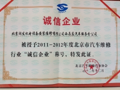日前,长城润滑油汽车养护中心西马庄店在北京汽车维修行业协会组织的20112012年度北京汽车维修行业诚信企业评选中入围,获得诚信企业称号。从2006年至今,长城润滑油汽车养护中心西马庄店已连续七年获此荣誉。 一直...