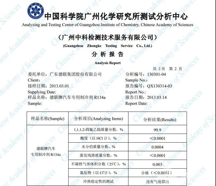 l 德联R134a汽车专用制冷剂,无毒无色、不燃不爆、热稳定好、不损害臭氧层,是新一代的环保制冷剂。