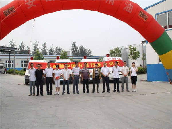安耐驰中国万里行启动发车仪式在石家庄永隆兴经贸有限公司总部进行。上午8:30分发车仪式现场锣鼓喧天,拱门上写着“安耐驰润滑油中国万里行发车仪式”,整装待发的四辆宣传车并列停放,公司员工列队鼓掌欢送即将出发的车队和公司营销团队的队员们。公司总经理付永红先生发表了壮行词,讲述这次活动的意义、目的,预祝这次万里行活动取得圆满成功。9:00点整四辆车依次驶出公司大门,此时鞭炮齐鸣,欢送万里行车队出发。