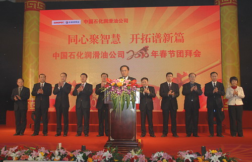 金牛耕冬去,瑞虎迎春来,2月9日,中国石化润滑油公司以“同心聚智慧 开拓谱新篇”为主题的2010年新春团拜会在京召开。公司员工与海内外客户代表、离退休老同志欢聚一堂,互致问候,分享喜悦,共贺新春。