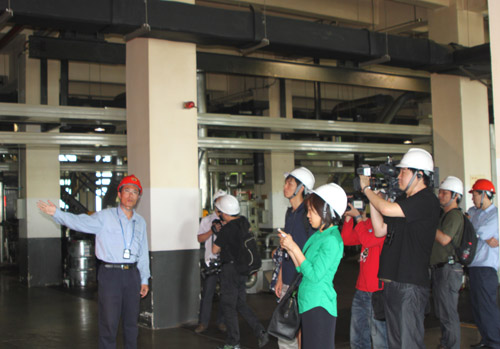 媒体交流阶段结束后,记者们饶有兴致地参观了中国石化润滑油公司天津分公司润滑脂二车间,在先进的流水线以及电脑控制台前举起相机、摄像机,拍摄下润滑产品现代化大生产的运行情况。