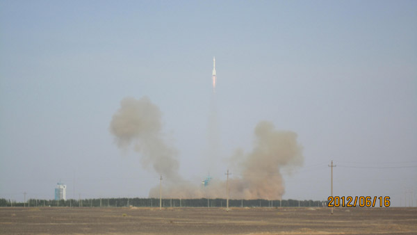 劳模们16日上午应邀参观了酒泉发射基地航天技术中心以及后勤保障基地,并于下午16:30分进入观看发射区域,在几千米外注视“神九”的发射。下午18:37分,神九准时发射,巨大的发射声传来,令人激动得心都像要跳出来了。现场观看的所有嘉宾都倍感震撼,情绪高涨,久久不能平静。