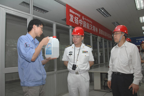 来宾参观航天润滑产品生产基地。