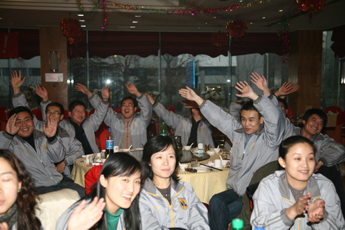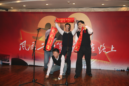 2009年1月19日下午3点30分,公司“2009年度会议· 新年联欢会”在青岛海明威大酒店隆重召开。 2009年是公司成立二十周年,因此晚会以“风雨二十年,我们在路上”为主题,全场共分为“2008年终总结表彰”、“节目表演”、“晚宴”三个版块进行。本次晚会气氛热烈祥和、节目精彩纷呈,在此起彼伏的歌声、笑声、欢呼声中,公司迎来了更加精彩绚烂的一年!