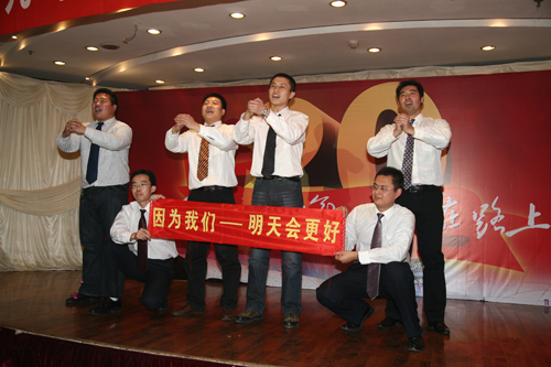 首先,朱总和王总分别发表了新年贺辞,为全体员工送上新年的祝福,勉励大家再接再厉,再创新高。随后,在隆重而欢快的气氛中,公司对2008年业绩突出的集体和个人进行了表彰,现场颁发了奖状和证书。