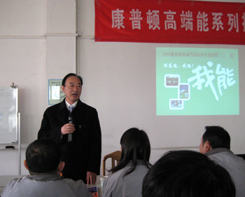 会上市场部肖淑梅经理对公司今年高端产品市场营销有关方案和措施做了讲解。继去年康普顿能系列“速能”、“劲能”和“超能”的上市,升级清洁配方的康普顿洁能机油也将在3月份上市,这款机油专门面向中高档轿车,具有抑制油泥生成的独特性能。随着新产品的推出,贯穿全年的针对终端的促销活动也正式启动。自3月1日起至12月15日,康普顿SL汽油机油和CH-4柴油机油,由公司直接对修理厂或者4S开展销售积分兑奖活动,所兑奖品均为公司精心选择、能够帮助修理厂提高工效的工具、维修和检测设备。技术部王强主任从产品基础油选择和添加剂配方等技术角度对新产品以及公司其他高端产品进行了介绍,使大家更充分了解康普顿高端机油的优异品质和出色的产品性能。品质是信心的保证,王主任的产品介绍增强了大家对推高端产品的信心。