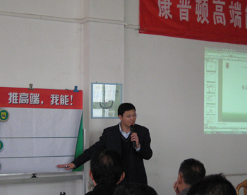康普顿事业部焦广宇经理从销售层面首先对康普顿高端产品的价格、销售政策等方面与主要竞争对手做了对比,十分透彻的对康普顿高端产品的优势进行了分析,指出了康普顿高端产品市场提升空间所在。同时宣布了高端产品销售目标以及内外部销售考核补充政策,对目标分解、目标推进、销售政策落实等方面的工作进行了统一部署。焦经理的理性分析和新政策的出台,进一步增强了广大销售人员的信心,也充分的调动起大家的积极性。现场反应十分热烈。