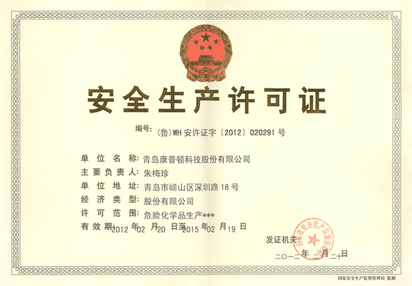 2月20日,康普顿公司获得由山东省安全生产监督管理局颁发的危化品生产许可证,获得这一许可证使路邦汽车养护品的市场开发和生产安全得到了进一步保证。