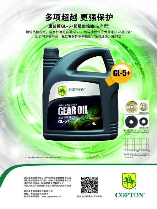 康普顿GL-5+拥有更卓越的极压和抗磨性能,对齿轮提供更好的保护,有效减少齿轮磨损。