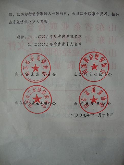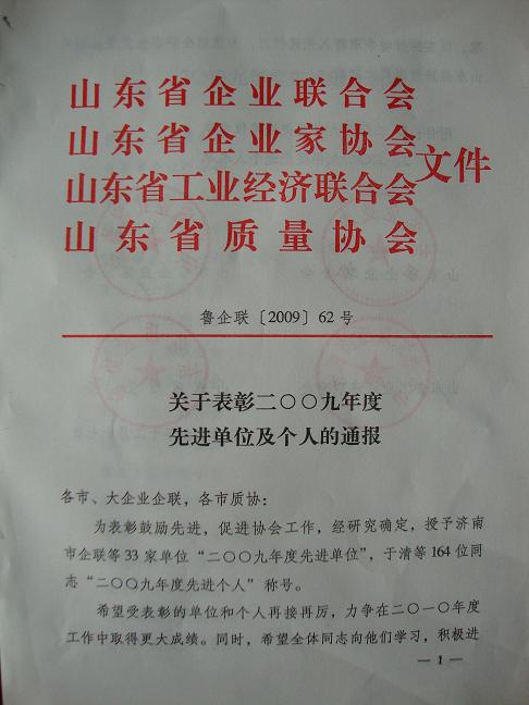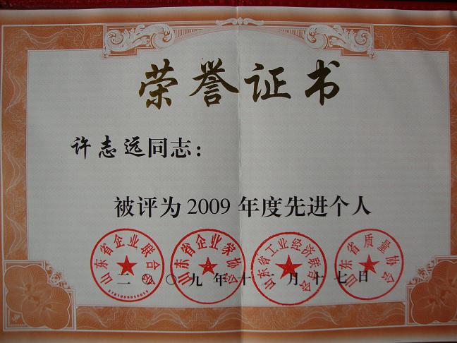 祝贺我公司许志远同志荣获山东省“2009年度先进个人”荣誉称号