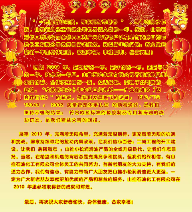 新年捷报虎添翼,石化销售创新篇 ——山推石油化工有限公司2009年