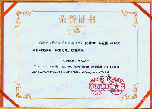 紧随其后进行的是TnPM特别贡献奖颁奖仪式,TnPM的茁壮成长离不开企业和合作伙伴一直以来对于TnPM体系的信赖和支持,因此TnPM特备贡献奖顾名思义就是为了表彰在设备管理事业上和TnPM体系发展建设上有特别贡献的企业而特别设立的奖项;珠海经济特区顺益发展有限公司、广东燕京啤酒有限公司、四川烟草工业有限责任公司、招金矿业股份有限公司分别获得此殊荣。澳洲TPM中心负责人,CTPM Australia 总裁 Ross Kennedy先生为获奖企业颁发奖牌和证书。