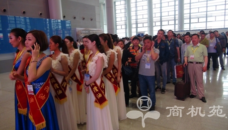 特斯特礼仪小姐带领代理商参观团成员排队进场