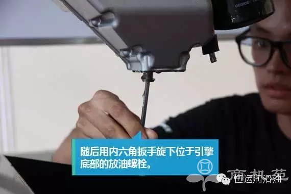 2、拧开放油螺栓 ![]() 随后用六角螺栓拧下放油螺栓将发动机内的废油排出,如果静置冷却润滑油的时间较短此时需要注意防止流出的润滑油烫伤。