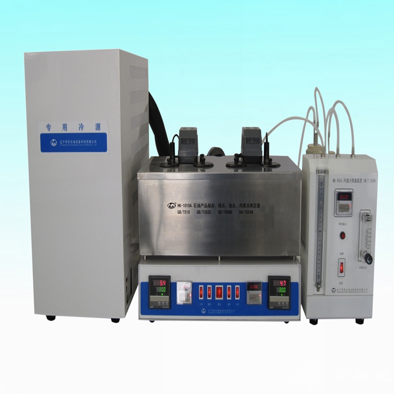 HK-1015A 凝点、倾点、浊点、冷滤点测定器,符合GB/T 510《石油产品凝点测定法》、GB/T 3535《石油产品倾点测定法》、GB/T6986《石油浊点测定法》、SH/T 0248《柴油和民用取暧油冷滤点》等试验方法的要求,适用于测定石油产品的凝点和倾点,测定在40毫米层厚透明、且浊点低于40℃的石油浊点,测定柴油和民用取暖油冷滤点。