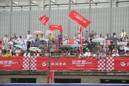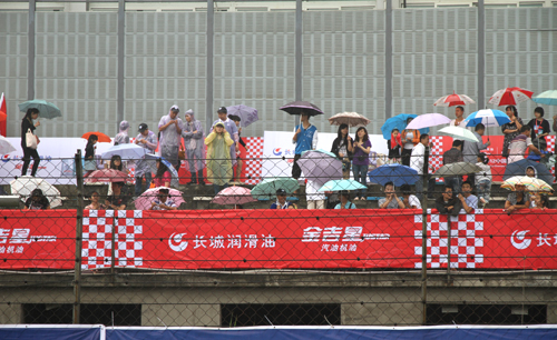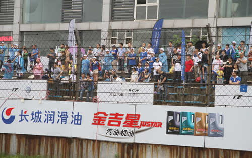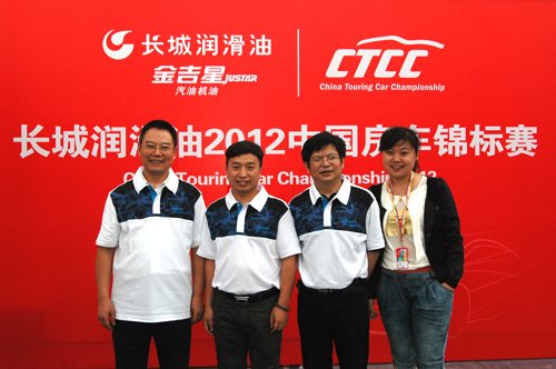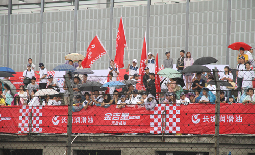 由近450名经销商、终端客户、修理厂、修理工、私车主组成的长城润滑油助威团,身穿白蓝相间T恤,亮相赛道看台显得格外引人瞩目,红色的长城润滑油宣传旗,在赛车溅起的水雾中飘动,形成了一片红色的海洋,他们或挥舞着宣传旗,竭力的呐喊,为车手加油,或赞许长城润滑油为他们提供了这样近距离感受赛车运动的刺激,一位终端客户说,我是一个车迷,我非常喜欢赛车运动,从长城润滑油赞助A1、2009年珠海的房车赛为华晨车队提供高品质制动液,再到今年冠名中国房车赛,我都知道,长城润滑油持续关注赛车比赛,让车迷感受到了幸福,感受到了扬眉吐气,长城润滑油真棒,我们近几年一直用长城油,油品质量不错,今后也继续用它,愿长城油继续支持中国赛车运动,愿长城润滑油家喻户晓。