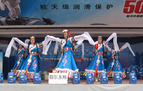 美丽的鄂尔多斯姑娘载歌载舞,为活动填上了一抹亮丽的色彩。