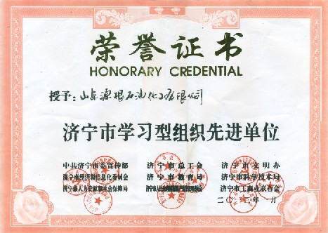 在济宁市第八届“创建学习型组织、争做知识型职工”活动先进单位和个人表彰大会上,源根石化公司被授予“”荣誉称号。本次以“创建学习型组织,争做知识型职工”为主题的评选活动是由中共济宁市委宣传部、济宁市总工会、济宁市文明办、济宁市经济和信息化委员会和济宁市科学技术局等多家单位合办,旨在全面提升全市职工队伍素质,服务全市科学发展、跨越发展,营造尊重知识、尊重人才、尊重创造的风尚,激发广大职工学习的主动性、积极性和创造性。