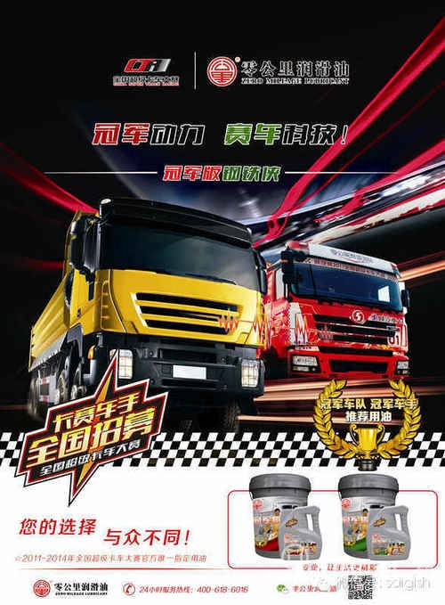 你还记得2013年全国超级卡车越野赛场上有80后兄弟连的车队吗?是的,你没有猜错,他们是零公里润滑油队。 “完美润滑,从零公里开始”正如整个车队的完美表现一样,为了不断适应全国超级卡车越野大赛极限的使用条件以及苛刻的赛道设计,零公里润滑油自2011年成为全国超级卡车越野大赛的官方指定专用润滑油之后,不断超越自我更新换代。2014年4月6日,由全国超级卡车越野大赛组委会常务副主席李上雄先生亲自签名的零公里钢铁侠冠军版机油火热上市。