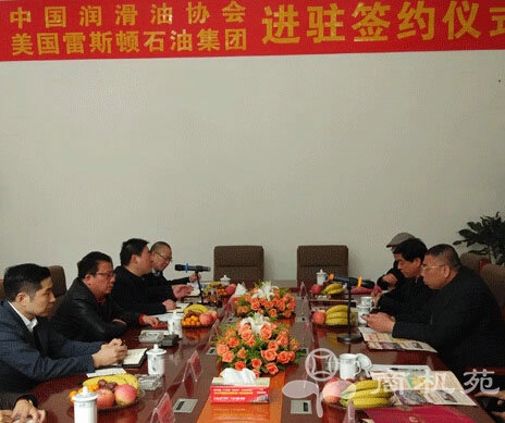 4月8日,中国润滑油协会会长何建立、美国雷斯顿石油国际集团中国总裁栗希周一行考察衢州凯泰国际汽车城,并和衢州火宏凯泰汽车文化产业园董事局主席翁士文共同签署进驻协议,双方本着“发挥优势、相互促进、长期合作、互利互赢”的原则进一步推进战略合作,努力扩大双方合作的深度和广度,并以中国润滑油协会为指导,雷斯顿公司领衔、打造一个名副其实的以凯泰汽车城为辐射中心的华东地区润滑油、油脂采购供应基地。这将对稳定和平衡区域润滑油市场价格和供给促进地方经济起到积极作用。 ![]() 签约现场
