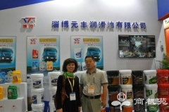 展厅前几十桶产品整齐堆叠在一起,一字排开,形成一堵样品墙;后面电视滚动播放着有关齐鲁古都山东省淄博市的介绍;淄博元丰润滑油有限公司几个大字浮在墙上,在展板上落下影子,错落有致。这是博特淄博元丰润滑油公司在2014第75届全国汽车配件交易会上的展位形象。公...