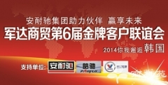 安耐驰集团助力伙伴 赢享未来 军达商贸第6届金牌客户联谊会 于2014年2月18日下午14:00点在三河新东大酒店举行!在此,作为军达商贸多年的合作伙伴,安耐驰集团系列润滑油祝贺军达商贸第6届金牌客户联谊会圆满召开...