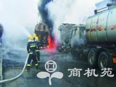 榆中润滑油厂四辆油罐车起火 消防扑救1小时排除险情