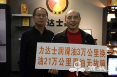 近日,力达士长沙地区发展商向总部传来喜讯:2013年10月16日,长沙市蓝灯出租车司机贺学辉先生驾驶牌照湘AT3641的出租车开进长沙力达士汽车会所更换润滑油,他每三万公里更换一次力达士润滑油,这已经是第8次了,至...