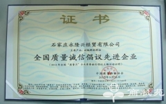 石家庄永隆兴公司荣获“全国质量诚信倡议先进企业”