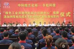 6月9日上午,中科院兰化所卡松科技绿色工业润滑材料联合科研中心揭牌暨添加剂等相关技术卡松科技产业化落地签约仪式在我司隆重举行。 仪式由任城副区长李玲主持。中科院兰化所所长刘维民、研究员王晓波,山东大学化...